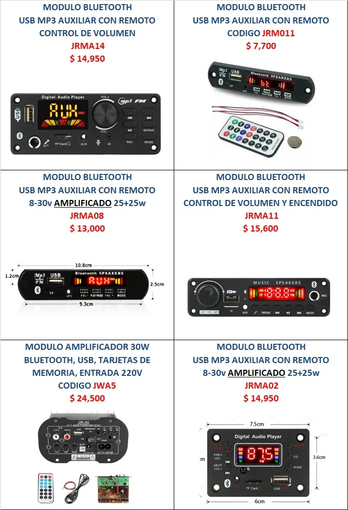 JRM - MODULOS BLUETOOTH, CON Y SIN AMPLIFICADOR,